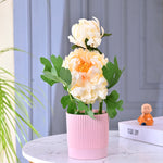 Artificial White Chrysanthemum in White Plant With Lined Pot