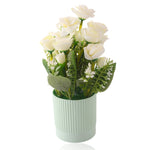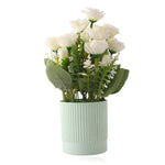 - Elegant Design: Beautiful artificial white flowers in a stylish lined pot.