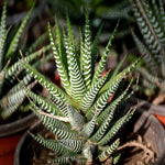 The Haworthia Zebra succulent plant comes with striped and thick leaves that resemble the Zebra pattern.